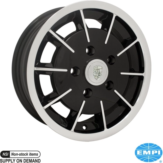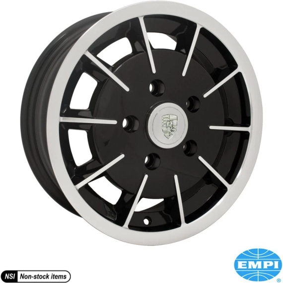 Alu wheel, Gasser, gloss black with polished lip and face, 5.5x15", 5x130, 5" back spacing