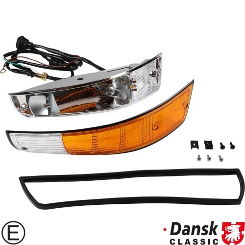 Indicator with black rim, front, complete with metal housing, with E-mark, right