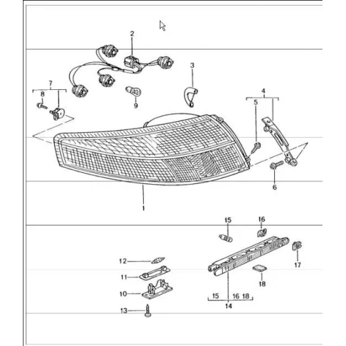 BREMSELYS 996 og 996TT/GT2 Gt3 nr 14 på tegningen bremselys rød smal-lang
