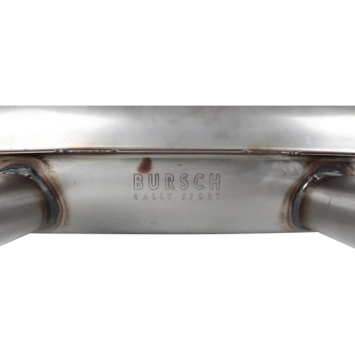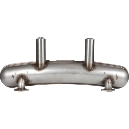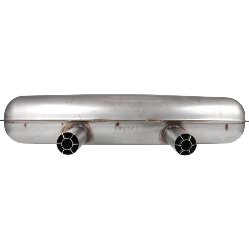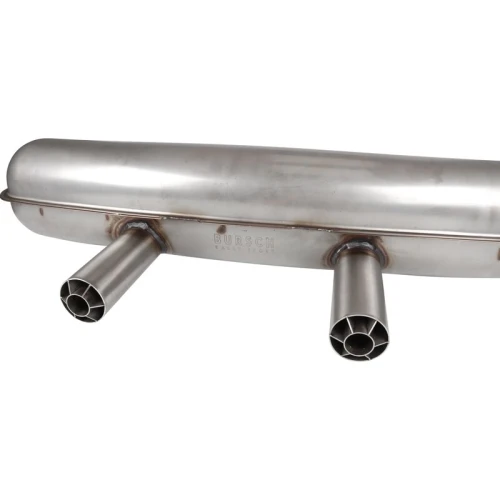 Stainless steel sports muffler with signature “cookie cutter” tips.