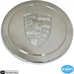Hub cap with Empi logo, stainless steel, chromed