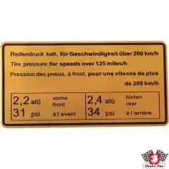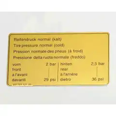 Sticker, tyre pressure, 200 km/h