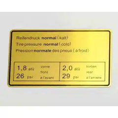 Sticker, tyre pressure