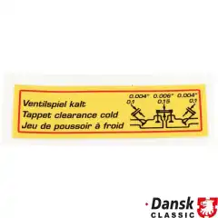 Sticker, "Tappet clearence cold", foil