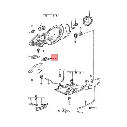 Deksel klar refleks klar til frontlampe 996/986 MED hull til LYKTESPYLER V. SIDE