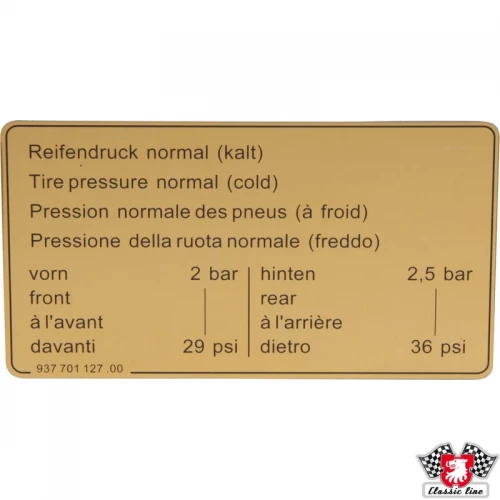 Etikett luftrykk dekk år 84-89 911