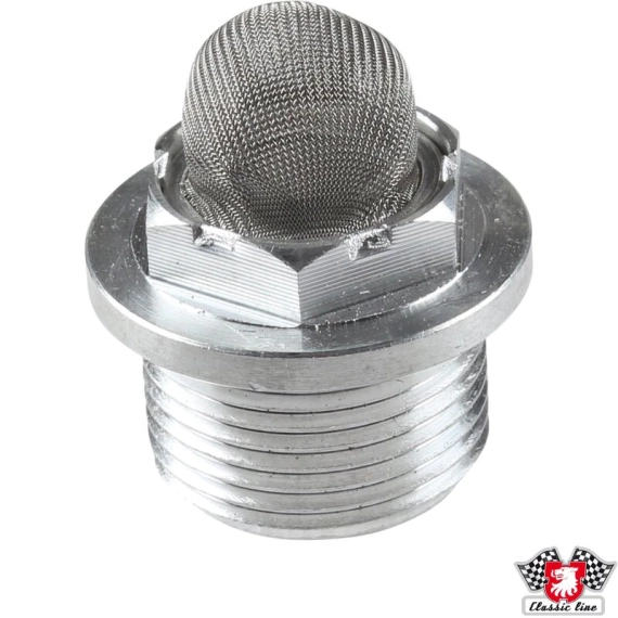 Union with strainer for brake fluid tank