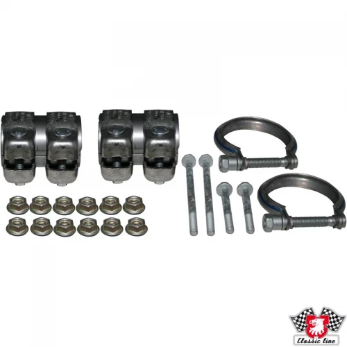 Monterings kit eksos 96.300Kit for 996 eksos. Bare de klemmer koster 382,- pr stk i stål hos Porsche , disse er i russfritt