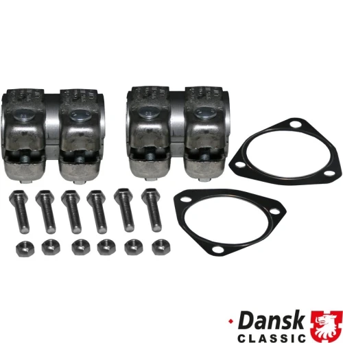 Mounting kit for dummy catalytic pipes. The kit includes clamps, gaskets, nuts and bolts