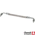 Oil hose, braided steel. From oil filter housing to engine oil line