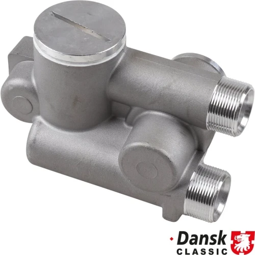 Oil thermostat housing, external. With fittings for oil lines
