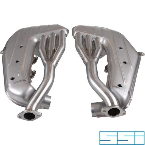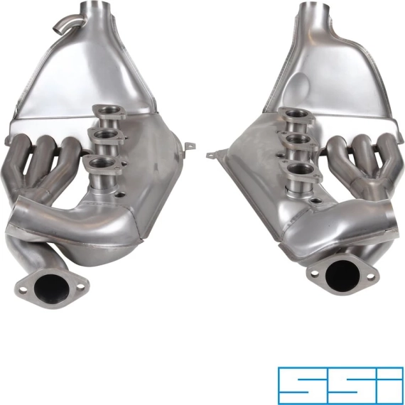 Output is increased particularly in the low and middle RPM ranges. The design makes power by minimizing intake charge disturbances at valve overlap, and increasing the exhaust gas extraction effect. The volumetric efficiency, and thereby the power output is increased. The SSI headers are significantly improved versions of the basic header design used by Porsche on all normally aspirated six cylinder competition engines.