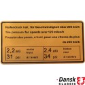 Sticker, tyre pressure, 200 km/h