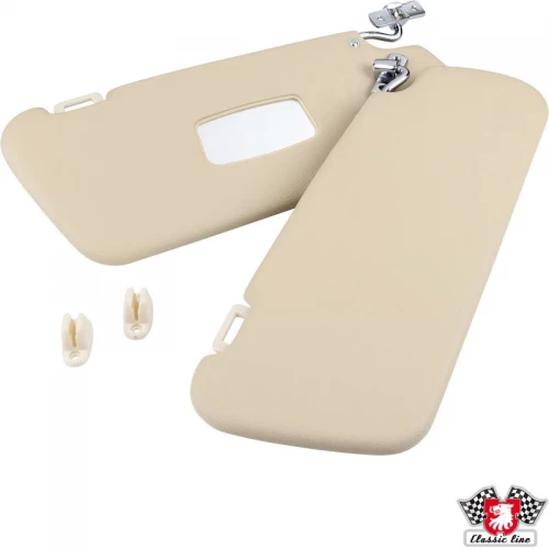 Sun visor set with mirror in passenger side, with clips, cream